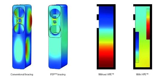 Basıncı hıza dönüştürmek ve hoparlör muhafazası içindeki genel basınç gradyanını azaltmak için tasarlanan HPE™ (Helmholtz Basınç Ekolayzer) teknolojisi, yalnızca kabin rezonansını azaltmak için 5050 yerde duran hoparlörlere uygulanmıştır. Bu teknoloji, tercih edilen tek bir frekansta rezonansa girme eğiliminde olan daha uzun hoparlörler için mükemmeldir.