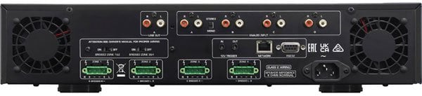 Bu amfi, sinyalinizi evinizin her yerine dağıtmanın bazı harika yollarına sahiptir. Arka panelde tüm bölgelere matrislenmiş dört analog RCA girişi vardır. Bu, girişleri bağımsız olarak atayabileceğiniz (örneğin, Bölge 1'e atanan giriş A) veya herhangi bir girişin herhangi bir bölge veya bölgelerde çalmasını sağlayabileceğiniz anlamına gelir. Daha da harikası, PA sisteminizden tüm bölgelere aynı anda önemli duyurular göndermenizi sağlayan Öncelikli Bölge PA Geçersiz Kılma seçeneği vardır.